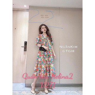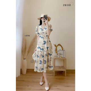 Váy maxi hoa nhí đuôi cá dáng dài – Đầm đi biển nữ form suông vintage V-ĐC2