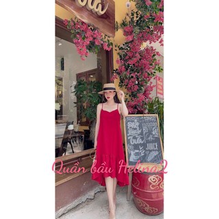 Váy bầu 2 dây THIẾT KẾ đuôi cá chất đũi thoáng mát mặc đi chơi, đi biển V276