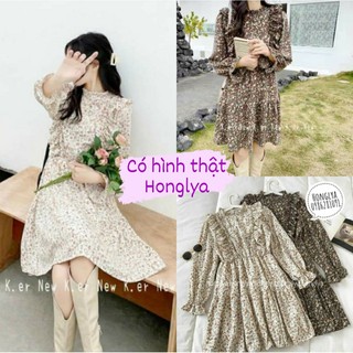 [Ảnh thật/Video] Váy hoa nhí 2 màu vintage - Đầm hoa nhí dài tay