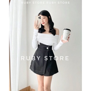 Set áo bẹt vai tay dài len kèm chân váy viền chỉ xịn xò