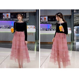 XẢ KHO Đầm Váy Xoè Cánh Tiên Tầng Hoa Chun Eo