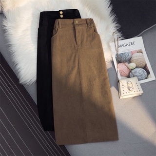 Chân váy nhung tăm cạp cao dáng suông lưng chun