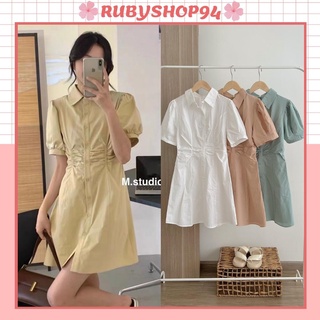 Đầm Sơ Mi Nữ Cổ Bẻ Ngắn Tay Dáng Xòe Ulzzang Hàn Quốc, Váy Sơ Mi Form Suông Kèm Dây Eo
