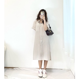 Váy suông kẻ sọc cổ sơ mi vải xốp không nhăn mềm thoáng mát, thấm hút mồ hôi- Miho house
