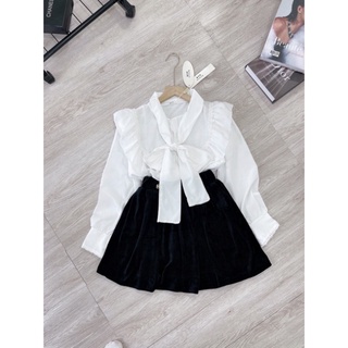 Sét Váy Xoè Mix Áo Sơ Mi Buộc Nơ