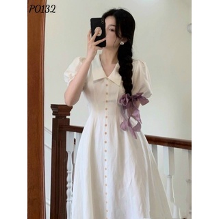 váy trắng tiểu thư sơ mi tay phồng vintage