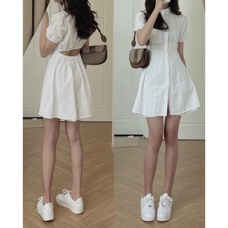 ĐẦM ULZZANG SƠ MI NGẮN THẮT NƠ - ELENA DRESS T217