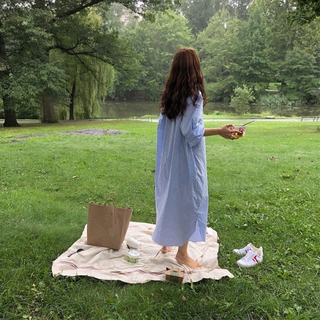 Đầm Sơ Mi Dài Họa Tiết Sọc Thời Trang 2021 Cho Nữ đầm bầu váy nữ váy bé gái váy dài chân váy dài váy nữ chân váy dài