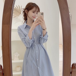 Đầm Sơ Mi Midi Tay Dài Form Rộng Dáng Dài Phong Cách Hàn Quốc Minipie