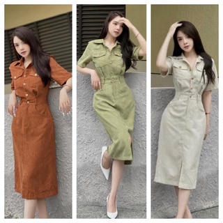 Đầm nữ, Váy nhung tăm dáng dài xẻ tà váy sơmi suông