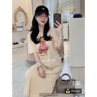 Đầm suông nữ, váy suông nữ cộc tay mùa hè in hình con gấu xinh xắn