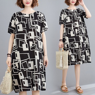 Đầm suông form rộng, đầm trung niên dáng dài hoạ tiết lạ D167