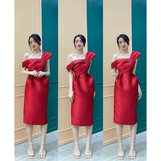 Đầm nơ xốp hở vai 1 bên dự tiệc sang chảnh ( BC)