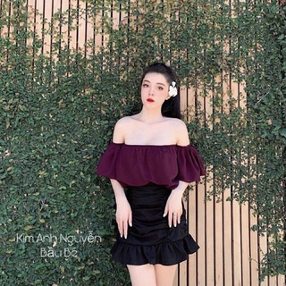 Váy Chuông Trễ Vai Tay Bồng 2 Mầu Siêu Xinh