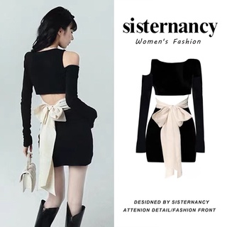 Đầm Mini Dài Tay Trễ Vai Lưng Cao Gợi Cảm Dành Cho Nữ