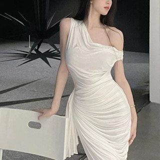 Đầm Trắng Không Tay Trễ Vai Xếp Ly Dáng Ôm Thời Trang Cho Nữ