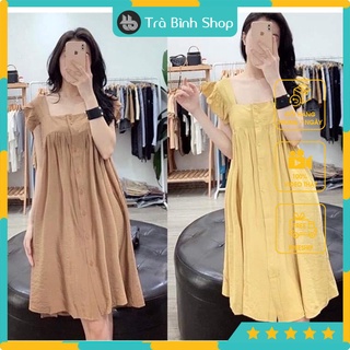 Đầm suông chất đũi tay cánh tiên váy dáng dài đính cúc xếp ly form rộng