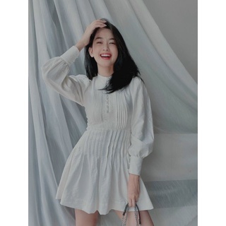 Đầm trắng babydoll nút xếp ly Lin Dress