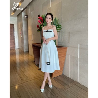 Đầm midi 2 dây xếp ly nơ ngực.
