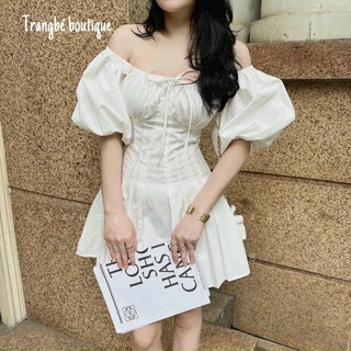 Đầm tay phồng bo eo chân váy xòe xếp ly sang chảnh