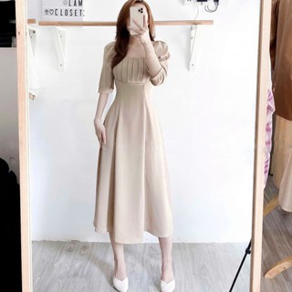 Đầm midi xếp Ly Ro-man vnxk dư xịn