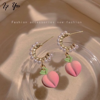 Khuyên tai AY mặt quả đào hồng phối ngọc trai nhân tạo phong cách Hàn Quốc thời trang cho nữ