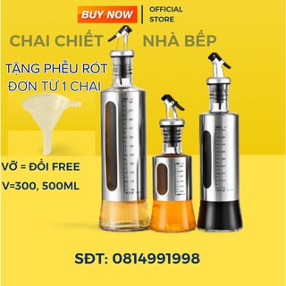 [Tặng Phễu Rót] Lọ Thủy Tinh Đựng Dầu Ăn, Chai Rót Dầu Ăn, Nước Tương, Nước Mắm, Gia Vị, Bọc Inox Sang Trọng 300ml