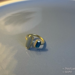 Nhẫn nữ phong cách cổ điển Hàn Quốc giọt dầu màu xanh và trắng