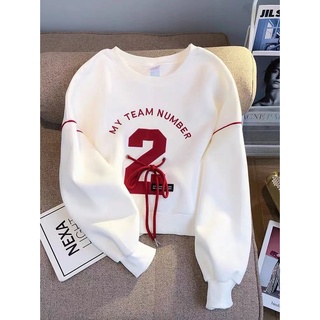 Áo thun lửng chui đầu dáng rộng màu trắng thêu họa tiết phong cách thời trang mùa thu 2022 mới