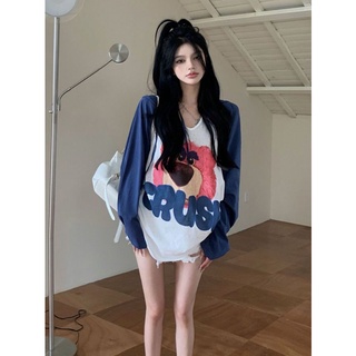 JSC Jiashucheng Áo Thun Có Mũ Trùm Đầu Màu Sắc Tương Phản Dáng Rộng Dài Vừa Phải Phong Cách Mùa Thu Cho Nữ