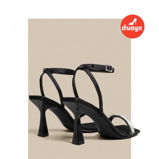 Duoya Tóc Thẳng ~ [Hàng Có Sẵn] Giày Cao Gót Sandal Cao Gót Dày Quai Đính Đá Màu Đen Dành Cho Nữ Thiết Kế Cảm Ứng Miễn Phí Vận Chuyển