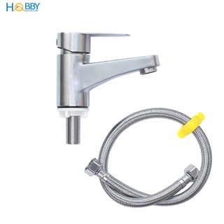 Vòi nước lavabo lạnh cho chậu rửa mặt HOBBY Home Decor LBL1 Inox 304 không rỉ sét kèm dây cấp 60cm