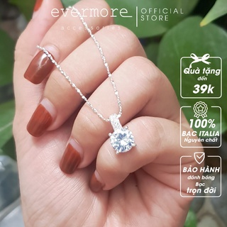 Dây chuyền bạc Evasilver mặt tròn đính đá nữ tính, Trang sức bạc Ý cao cấp