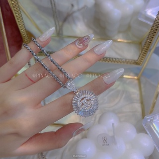 Dây chuyền, vòng cổ vuông 4D xi bạch kim phối mặt hoa tia đính full đá CZ cao cấp .PTNACC.