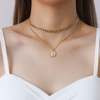 Dây chuyền 2 lớp dây lớn vòng cổ mặt đồng tiền