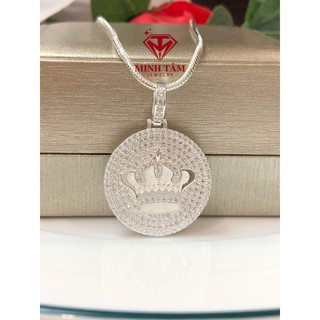 Mặt dây chuyền bạc nam mặt tròn vương miện nạm đá, Bộ dây chuyền bạc nam mặt hình vương miện bạc ta-Minh Tâm Jewelry