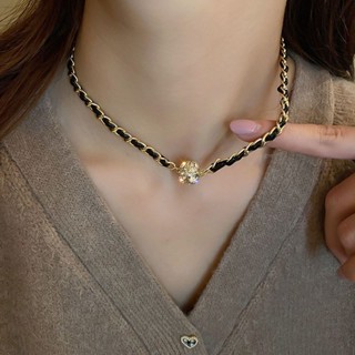 [Hàng Mới Về] Dây Chuyền Da Đính Kim Cương Giả Gài Bằng Nam Châm