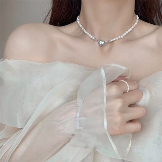 Dây Chuyền Choker Khóa Nam Châm Mặt Trái Tim Đính Ngọc Trai Thời Trang Cho Nữ
