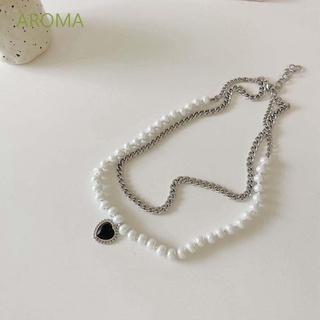 Dây chuyền hai lớp bằng hợp kim đính ngọc trai nhân tạo hình trái tim màu đen phong cách hip hop Hàn Quốc cho nữ