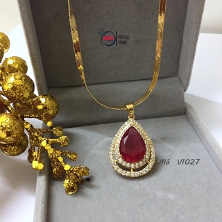 Dây Chuyền Mạ Vàng Nữ V1027 Đính Đá Đỏ Bản Lớn