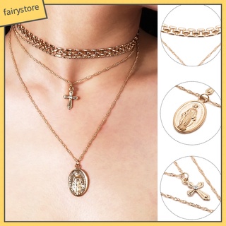 Dây chuyền đa lớp mặt hình chúa jesus và thánh giá thời trang