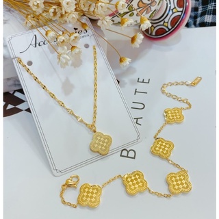 Bộ Trang Sức Lắc Tay Và Dây Chuyền Nữ Titan Ko Rỉ Cỏ 4 Lá TT 4085