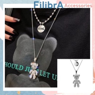 Dây chuyền mặt gấu bằng thép titan màu bạc thiết kế 2 lớp cá tính DC010- Fillibrastyle