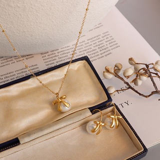 Bộ Trang Sức Bông Tai Và Dây Chuyền Nữ Titan Ko Rỉ Butterfly Đính Xà Cừ TT 4086