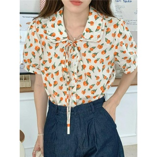 Áo Hoa Cột Dây Dây Phối Dây Cổ Ngắn Tay Thời Trang Retro Cá Tính 52800