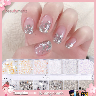 Hộp Kim Tuyến 12 Màu Sắc Lấp Lánh 3D Trang Trí Móng Tay Nghệ Thuật