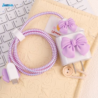 Bộ Phụ Kiện Quấn Dây Cáp Sạc Iphone 18 / 20W / 3D Bằng Silicon Hình Hoa / Nơ Xinh Xắn