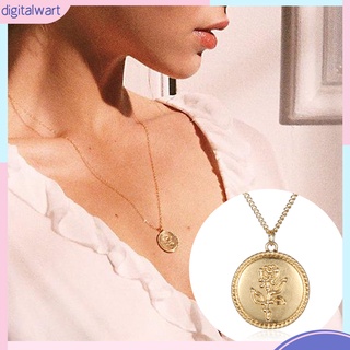 Dây chuyền mặt tròn hình hoa hồng phong cách vintage