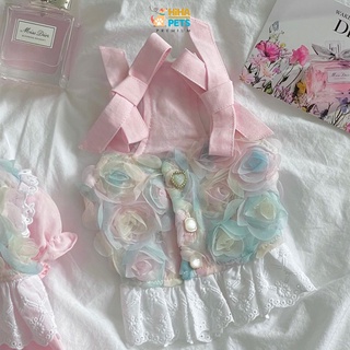 Váy Áo Cho Chó Mèo Công Chúa Hoa Hồng Di Or Vải Cao Cấp Màu Chuyển Quần Áo Thú Cưng Thiết Kế Thời Trang Hiha Pets.