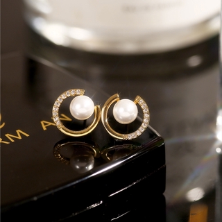 Khuyên Tai Hình Bán Nguyệt Đính Đá Ngọc Trai Giả Phong Cách Hàn Quốc